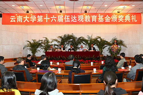11月7日下午,我校第十六届伍达观教育基金颁奖典礼在科学馆举行,表彰、资助在教学、科研和学业上表现出色的教师和学生。校长何天淳,原副校长、伍达观教育基金评选委员会主任林超民,校党委副书记张昌山,校纪委书记李建宇,副校长林文勋,获奖教师、获奖助学生代表参加了颁奖典礼。