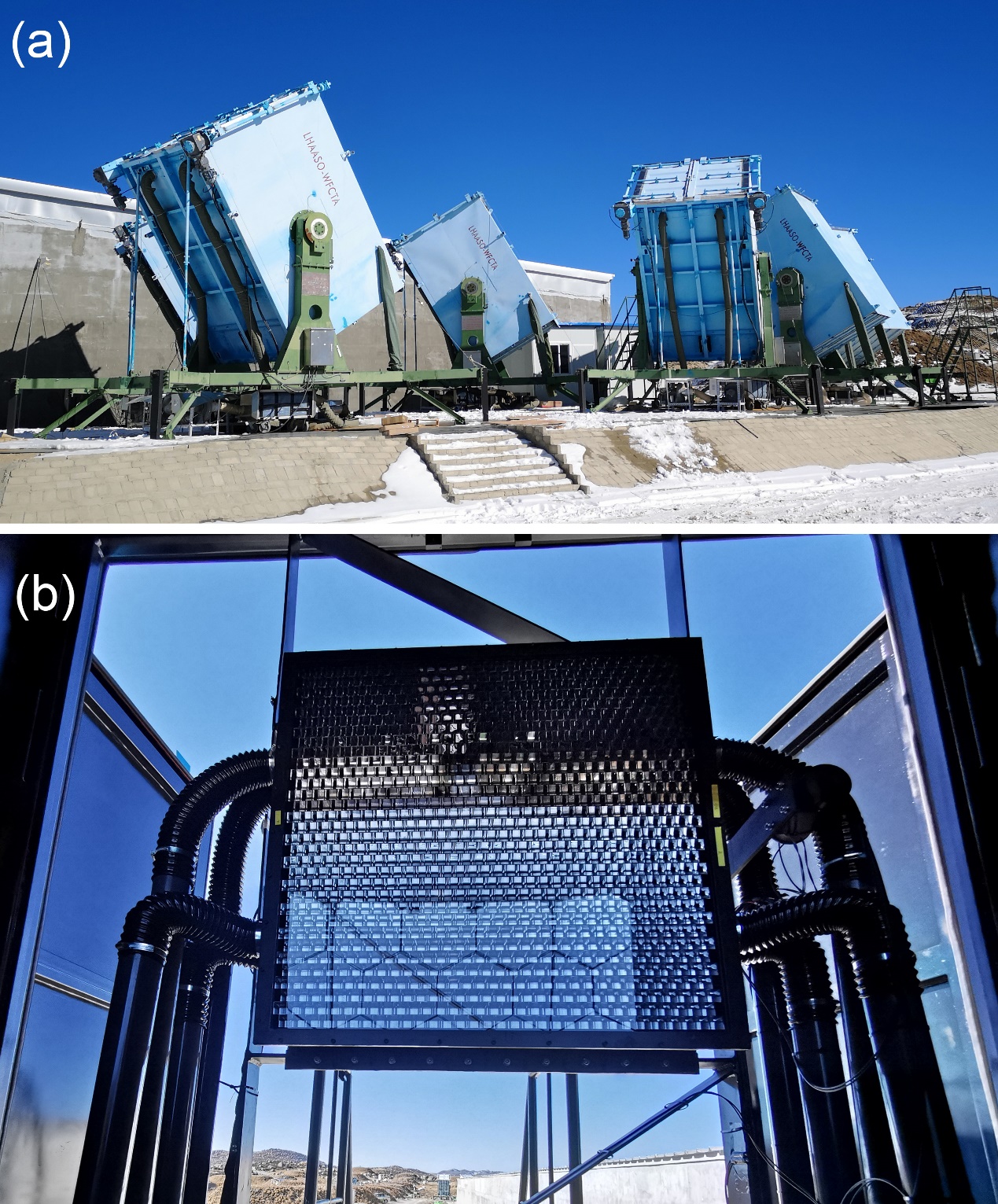 高海拔宇宙线观测站(LHAASO)是以宇宙线观测研究为核心的国家重大科技基础设施,位于四川省稻城县海拔4410米的海子山,占地面积约1.36平方公里,是由5195个电磁粒子探测器和1188个缪子探测器组成的一平方公里地面簇射粒子阵列(简称KM2A)、78000平方米水切伦科夫探测器(简称WCDA)、18台广角切伦科夫望远镜(简称WFCTA)交错排布组成的复合阵列。LHAASO采用这四种探测技术,可以全方位、多变量地测量宇宙线。