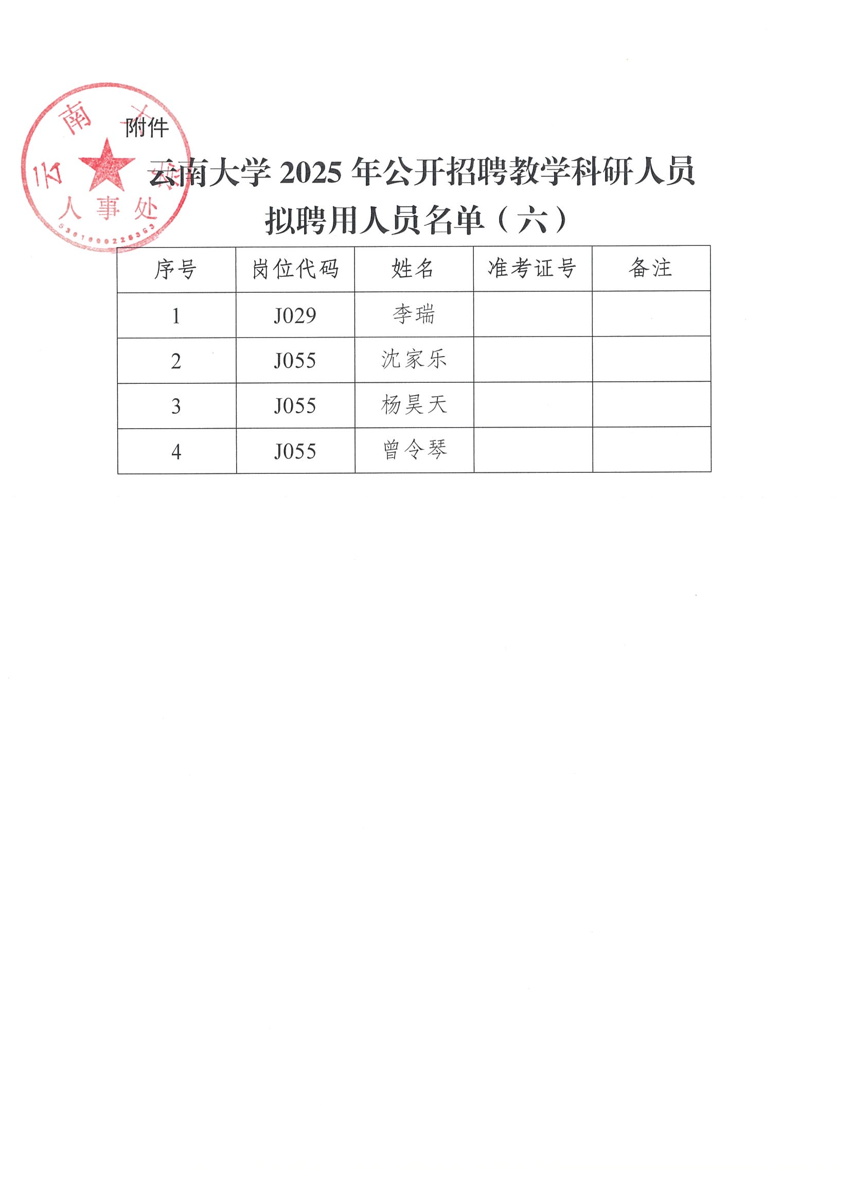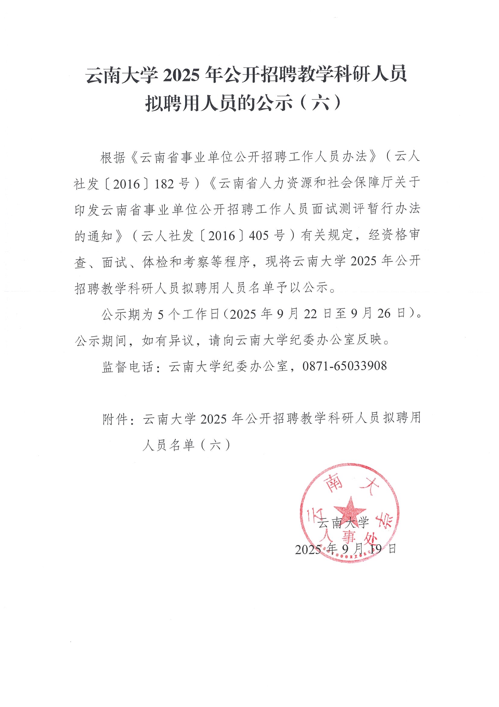云南大学2025年公开招聘教学科研人员拟聘用人员的公示(六)