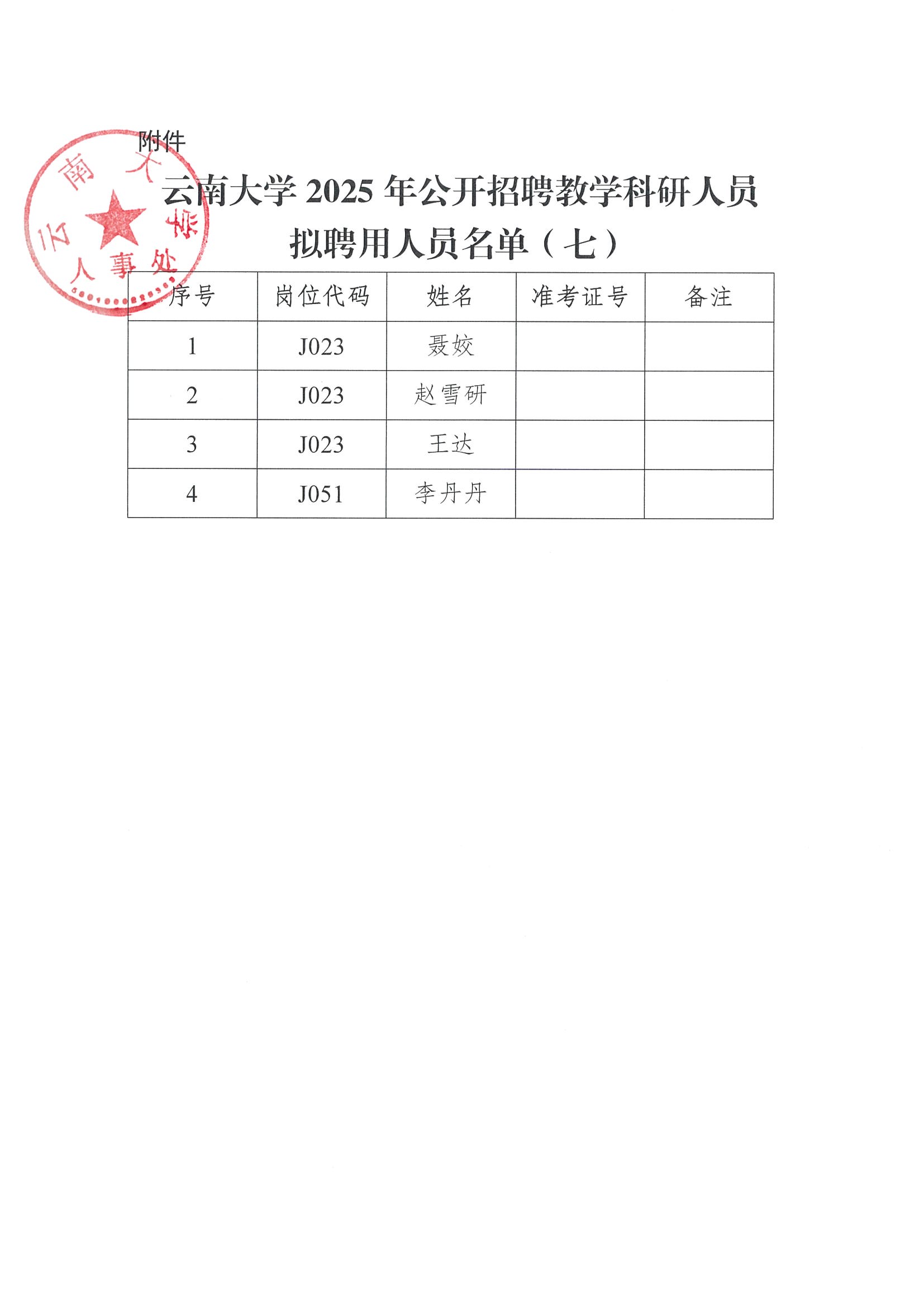 云南大学2025年公开招聘教学科研人员拟聘用人员的公示(七).pdf