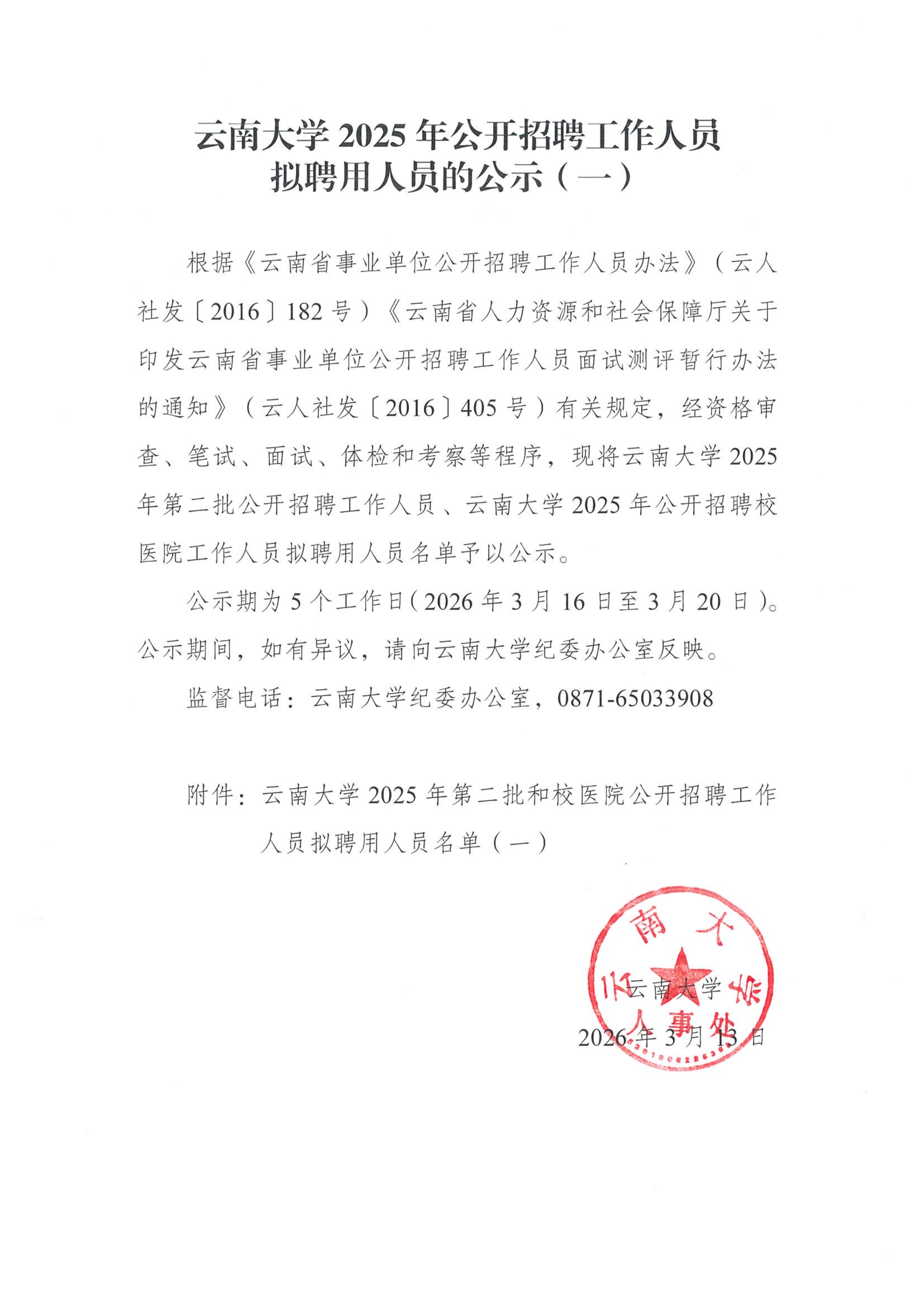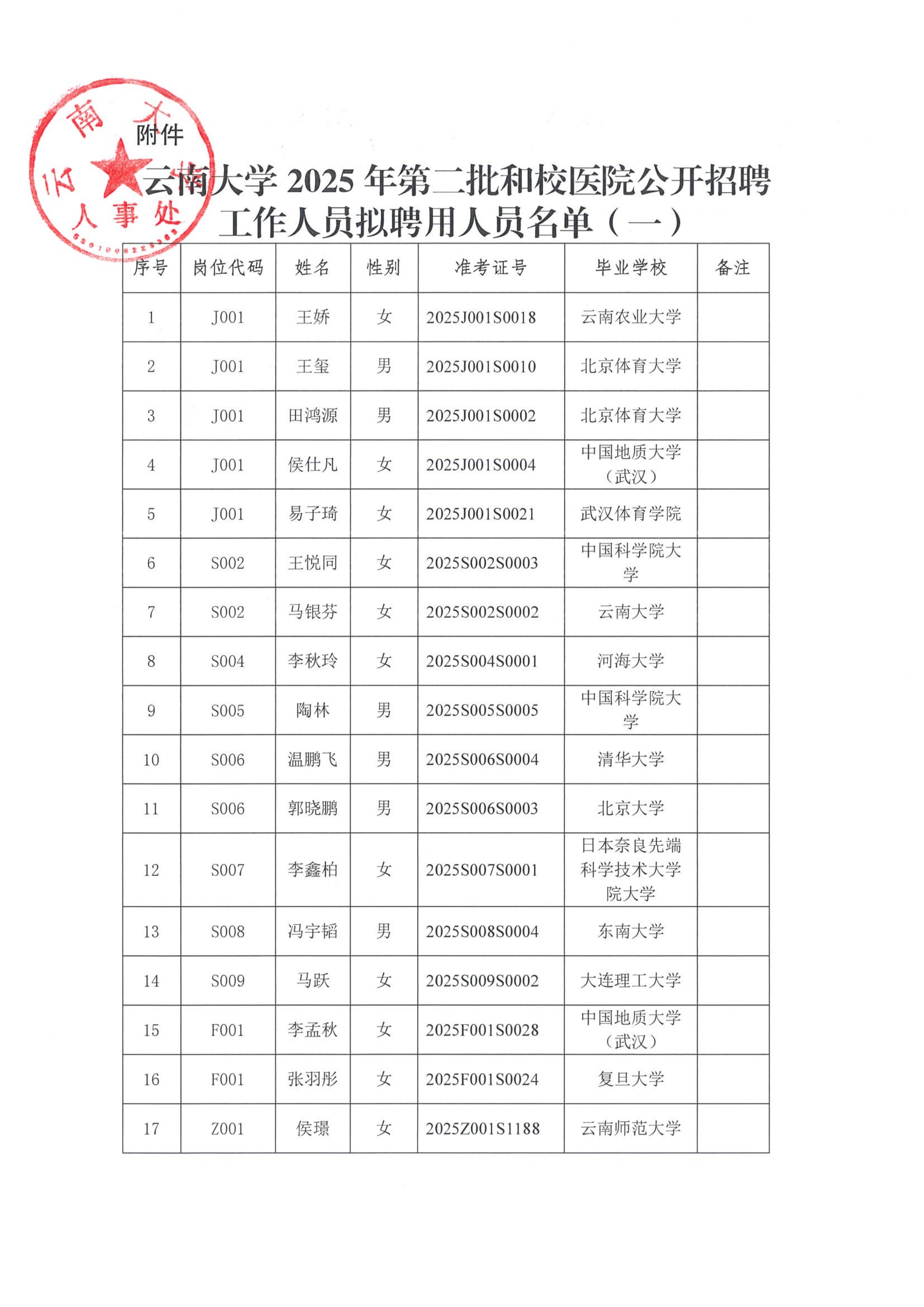 云南大学2025年公开招聘工作人员拟聘用人员的公示(一)