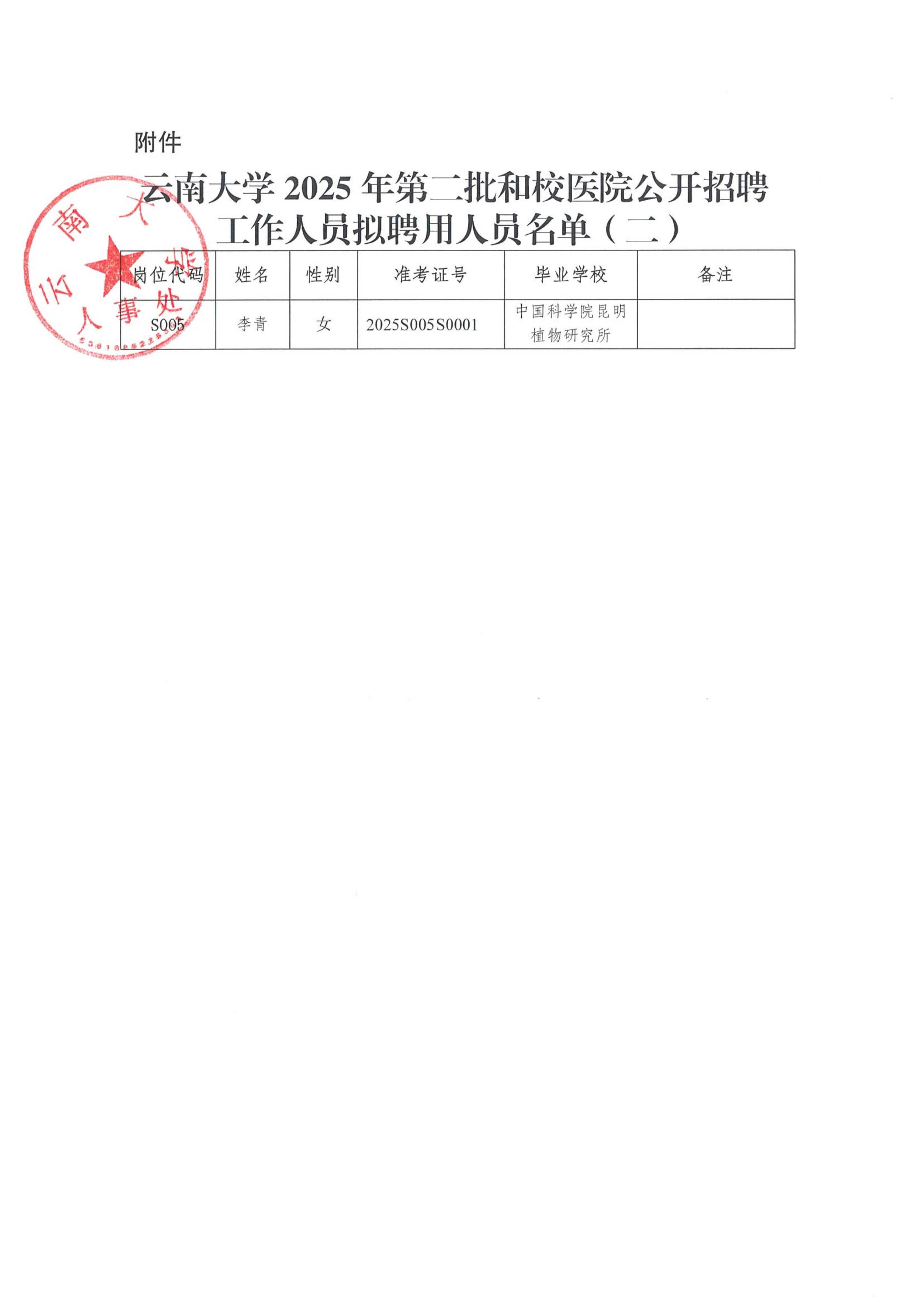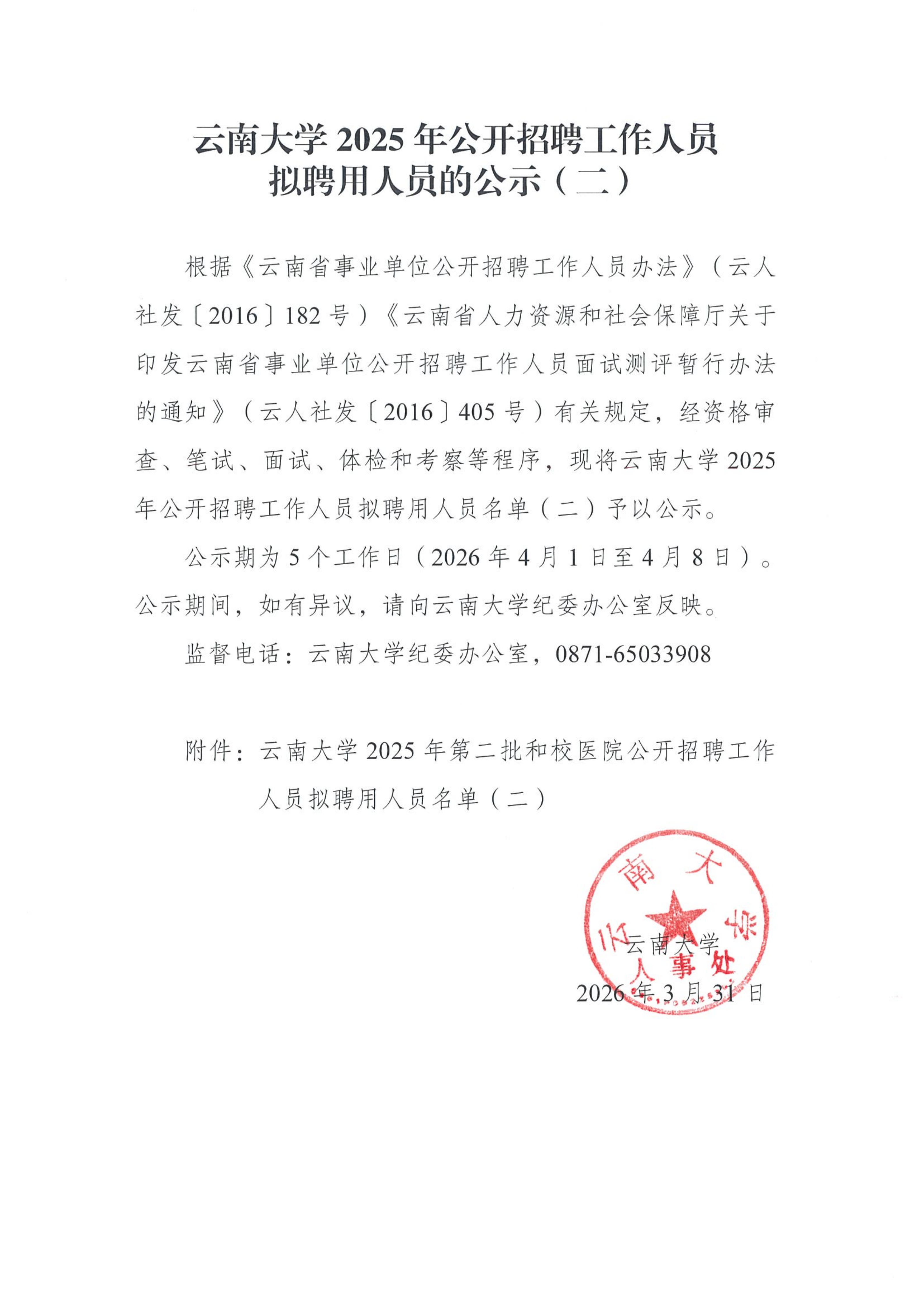 云南大学2025年公开招聘工作人员拟聘用人员的公示(二)